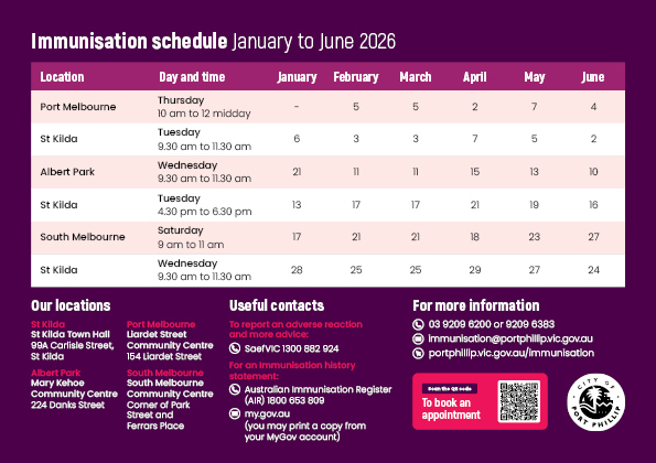 The City of Port Phillip offers free vaccines under the National Immunisation Program (NIP) to eligible individuals.