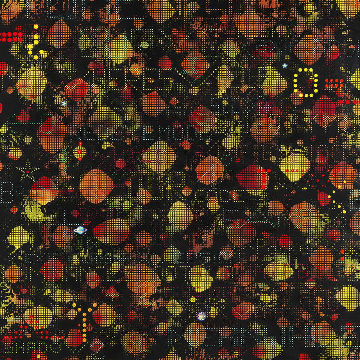 Enamel and decals on canvas