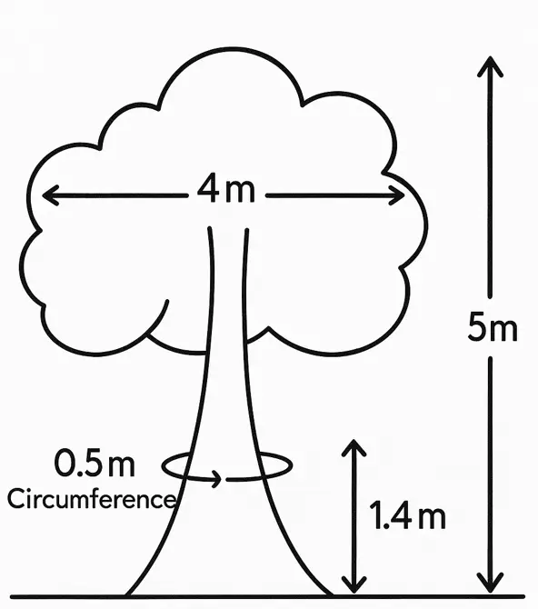 - a trunk circumference of more than 0.5 metres, measured at 1.4 metres above ground level; and