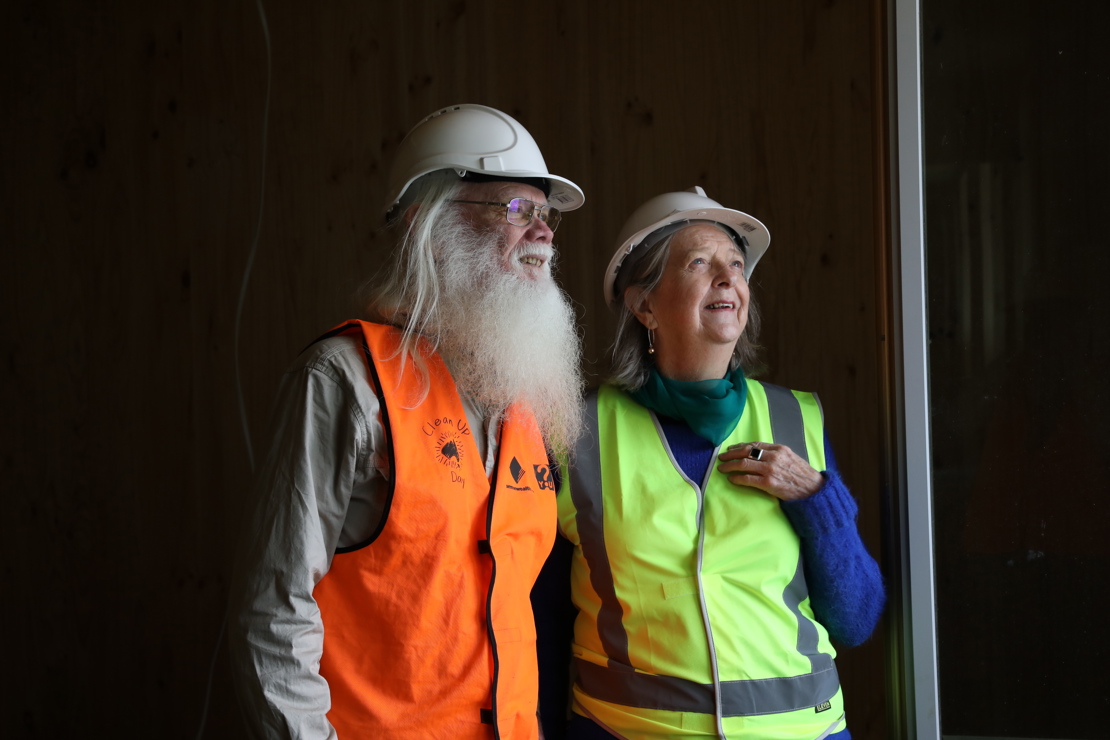 BayKeeper Neil Blake and Pam O’Neil, EcoCentre Management Committee inspect the EcoCentre redevelopment.