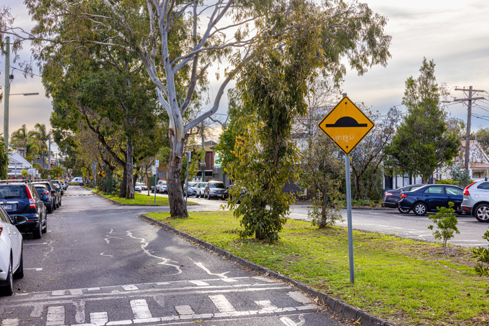 In response to community feedback, a grass path was maintained down the median. A traffic engineer was engaged to identify the safest entry and exit points to the median. The path leads to those points on each section of the median.