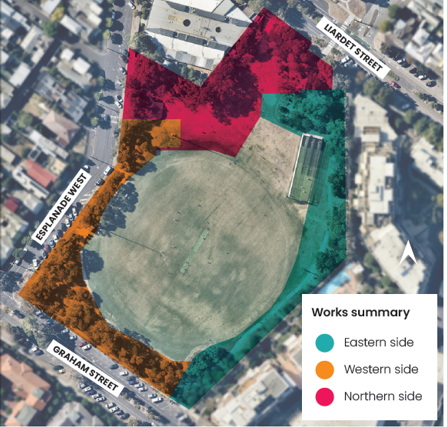 Stage 2 of the reserve’s improvement works began in April 2025 and will continue until October 2025. While the reserve will remain open to the public throughout this period, some access points and sections may be temporarily restricted to accommodate construction: