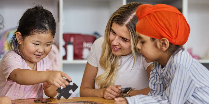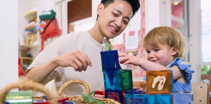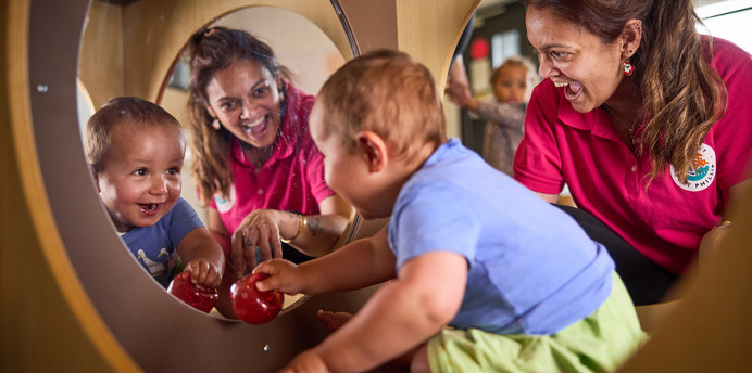 Childcare centres provide childcare for children from birth to school age (actual starting age can differ). They also offer integrated kindergarten programs for three-year-olds and four-year-olds. This means children could attend the same centre from birth until they go to school.
