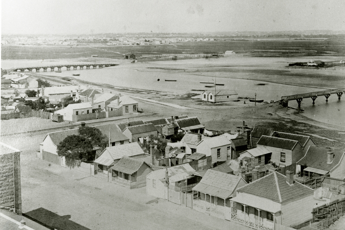 In 1850 the first land at Sandridge was sold, although the area had been surveyed as early as 1839. The most distinguishing feature of Sandridge at the time was the great saltwater lagoon as large as the settlement itself. The importance of Sandridge as the port for the metropolis was underlined when the first passenger railway in Australia was opened on September 12, 1854. It ran from Melbourne to Sandridge.