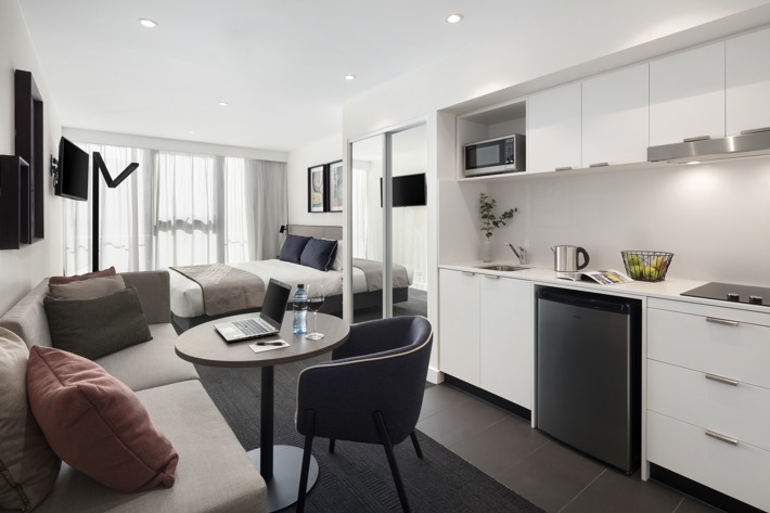 Conveniently located on St Kilda Road, Melbourne, between Commercial Road and Toorak Road, and with easy access to Melbourne city, Albert Park Lake and St Kilda Beach. Enjoy modern apartment hotel living, with space to relax and unwind. Two-bedroom apartments also available.