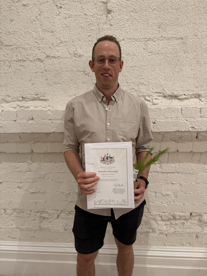 Stephen receiving his Australian citizenship at St Kilda Town Hall.