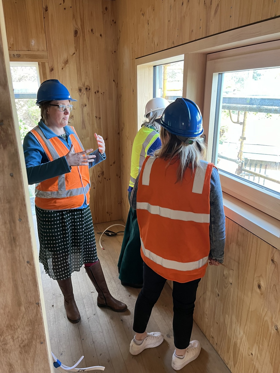 April Seymore (L), Executive Officer, EcoCentre on a recent tour of the new building with Pam O'Neil, EcoCentre Management Committee member and Beth Mclachlan, Head of Sustainability and Climate Change, City of Port Phillip.