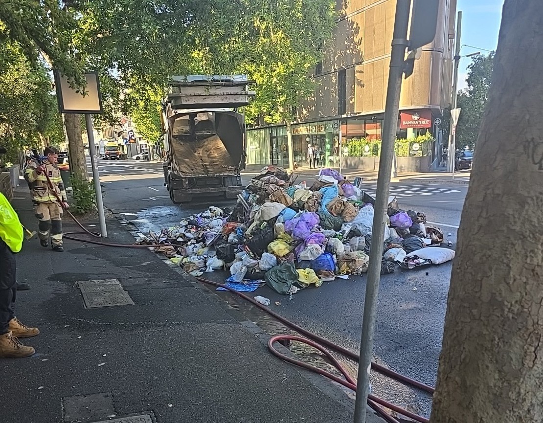 Scene from a truck fire on Barkly Street, St Kilda in December 2025