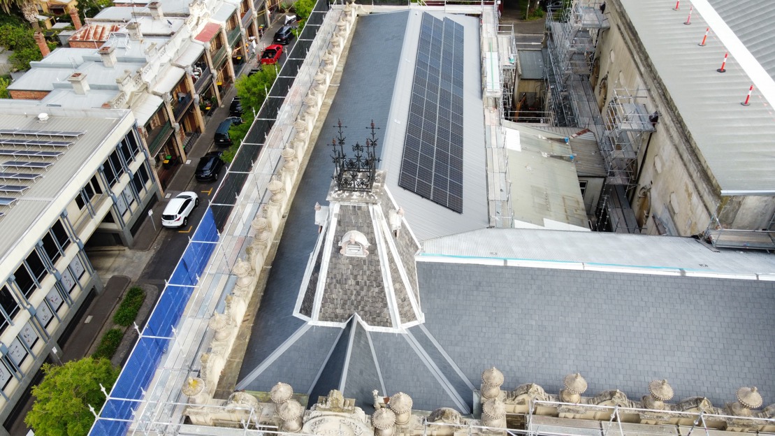 Aerial view of the recently replaced slate roof at South Melbourne Town Hall. Image by Terrence Le