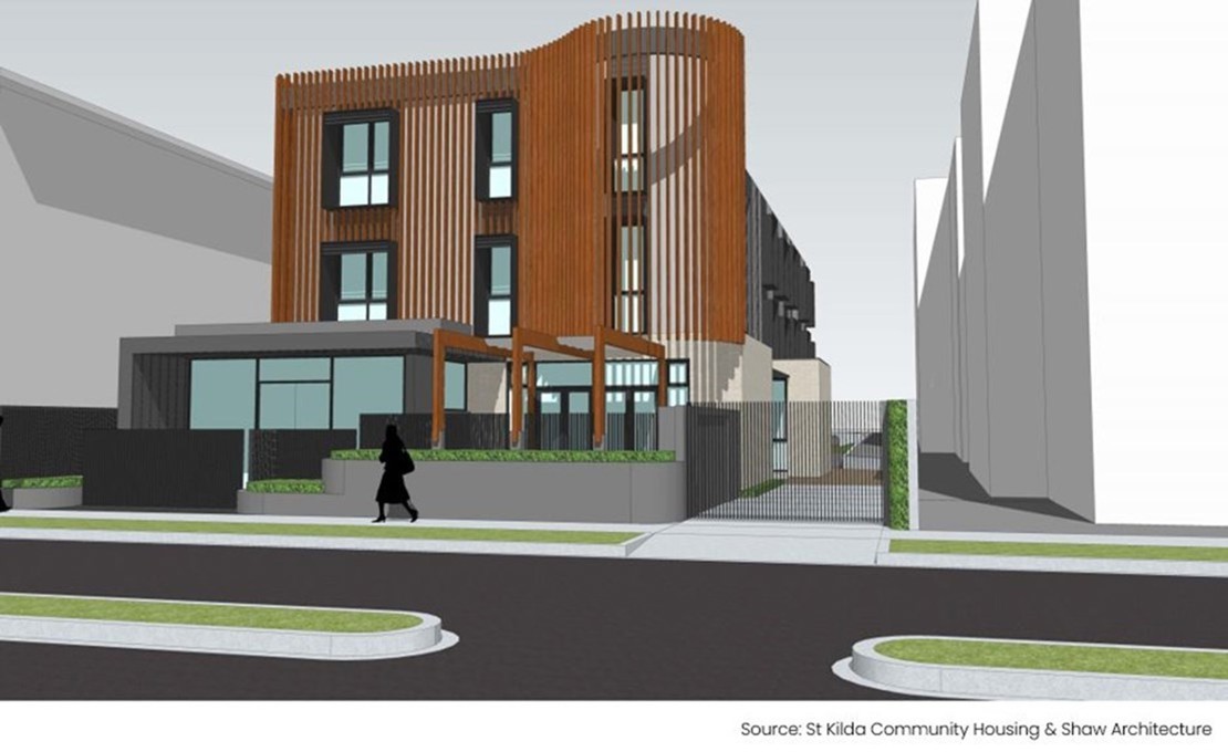 St Kilda Community Housing is delivering and will manage this project. It will provide 26 self-contained permanent housing units, in-house support service facilities and a concierge service for single persons who had been sleeping rough in Port Phillip.