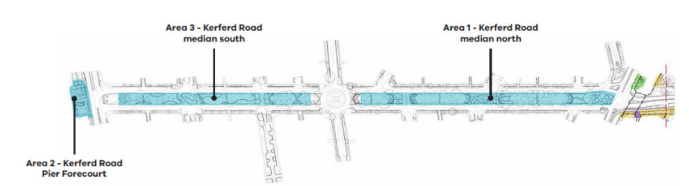 Council will undertake project management for the Yani Barripbarripuyt works on council land. This includes detailed design, procurement and construction of the Kerferd Road median and Kerferd Road Pier Forecourt. The plan below shows the extent of council’s scope.