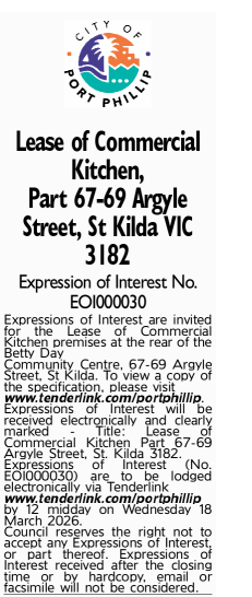 - Lease of Commercial Kitchen, Part 67-69 Argyle Street, St Kilda - closing date 12 midday, 18 February 2026 (103 KB)