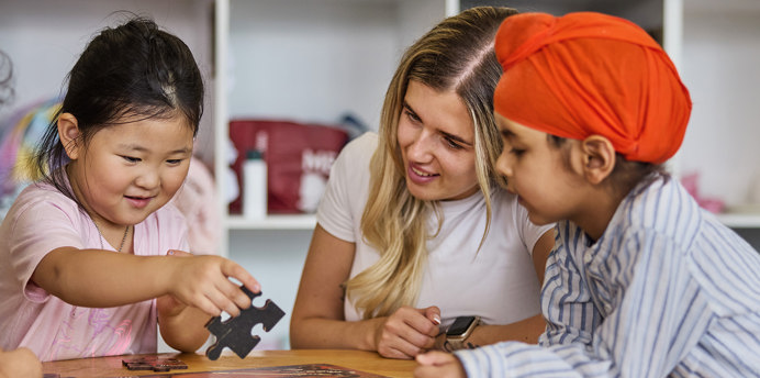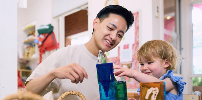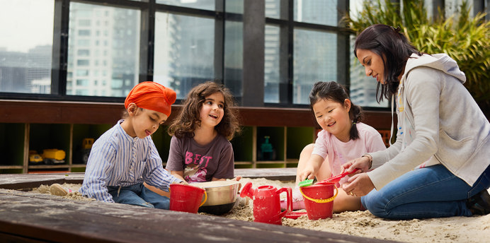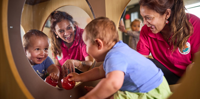 Childcare centres provide childcare for children from birth to school age (actual starting age can differ). They also offer integrated kindergarten programs for three-year-olds and four-year-olds. This means children could attend the same centre from birth until they go to school.