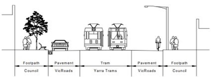 - Roads or assets belonging to other authorities or utilities such as DoT, DELWP, Yarra Trams, Parks Victoria, Melbourne Water Corporation and private roads/laneways.