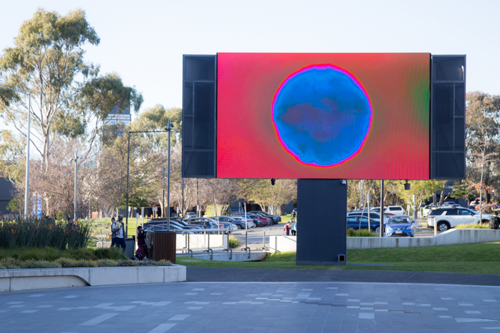 Orbs + Deep Pink. Bunjil Place. 2023.