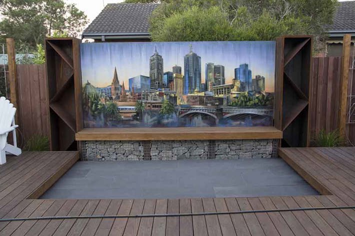 Cityscape Fire Pit Landscape Mural. 2014. Seaford.