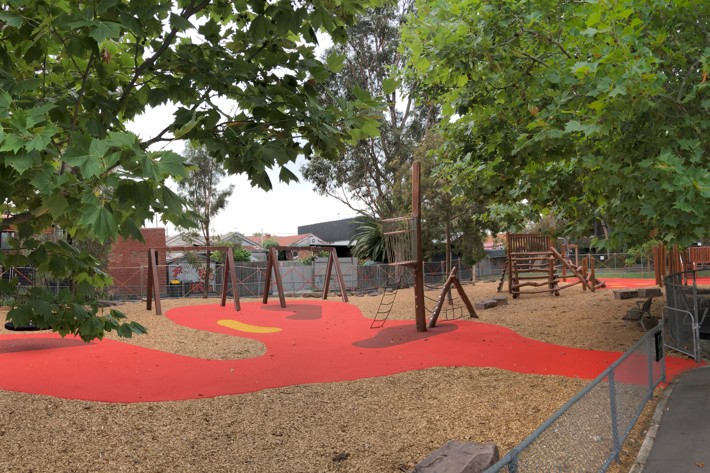 - Elevated timber deck and seating around front section of playground